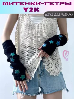 Митенки гетры теплые длинные без пальцев со звездами у2к