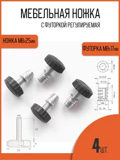 Ножка мебельная М8х25 + футорка М8х17, 4 компл