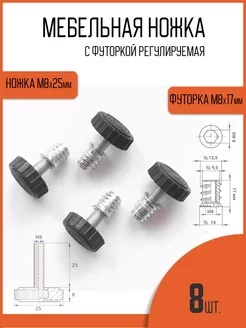 Ножка мебельная М8х25 и футорка М8х17, 8 компл