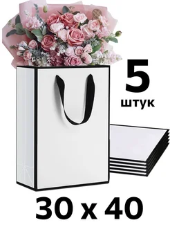 Набор премиум подарочных пакетов белых 5 шт 30х40х10 см