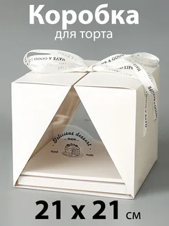 Подарочная коробка для торта с лентами 210х210х190 1 шт
