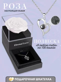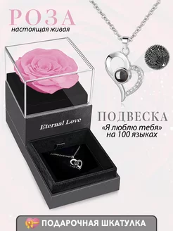 Подарочная живая стабилизированная роза в колбе с кулоном