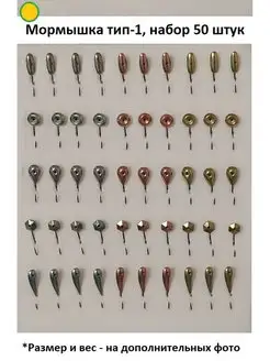 Набор мормышек тип- 1 (уп 50 шт), крючки Мустад