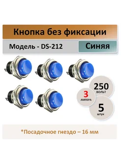 Кнопка без фиксации DS-212, синяя - 5 штук