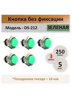 Кнопка без фиксации DS-212, зеленая - 5 штук