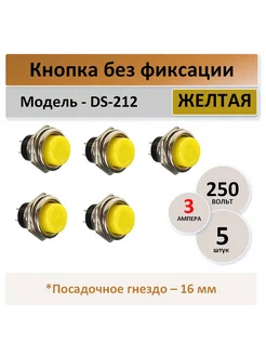 Кнопка без фиксации DS-212, желтая - 5 штук