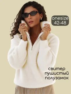Свитер пушистый оверсайз с горлом на молнии полузамок
