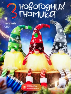 Гномы новогодние светящиеся под елку набор 3 штуки с ножками