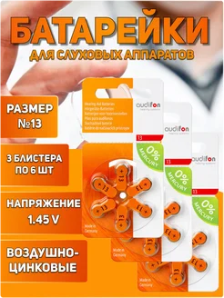 Набор батареек для слухового аппарата тип 13 по 18 шт