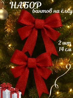 Новогодние украшения Банты на елку красные, набор 2 шт