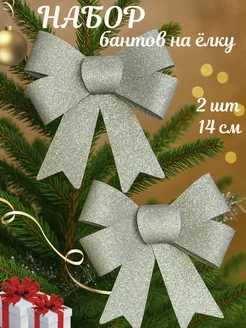 Новогодние украшения Серебристые банты на елку, набор 2 шт