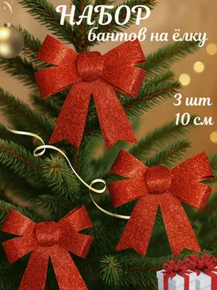 Новогодние украшения Банты на елку красные, набор 3 шт