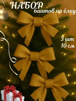 Новогодние украшения Банты на елку золотые, набор 3 шт
