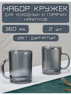Набор стеклянных дымчатых кружек в рубчик 360мл 2 шт