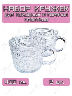 Набор из 2х стеклянных прозрачных кружек с узором 400мл