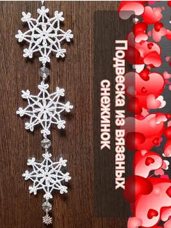 Вязаная подвеска из снежинок на елку