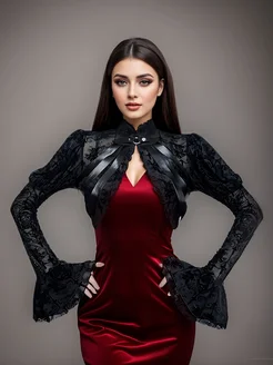 Болеро кружевное вечернее нарядное жакет укороченный черный