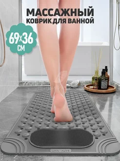 Силиконовый коврик для ванной 36х69см массажный на присосках