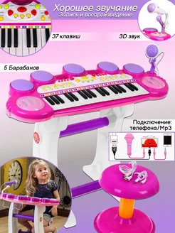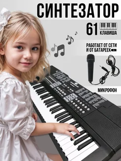 Синтезатор детский с микрофоном от сети батареек 61 клавиша