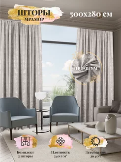 Шторы блэкаут 500х280 для гостиной в спальню Мрамор