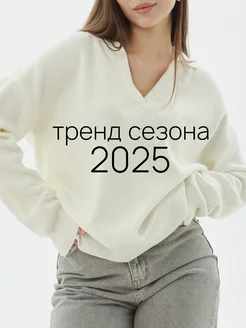 Кофта оверсайз вязаная с вырезом джемпер
