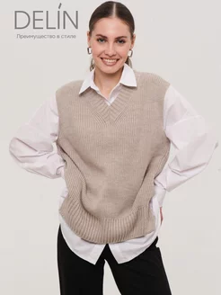 Жилетка школьная вязаная оверсайз трикотажная безрукавка