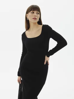Платье лапша трикотажное миди в рубчик