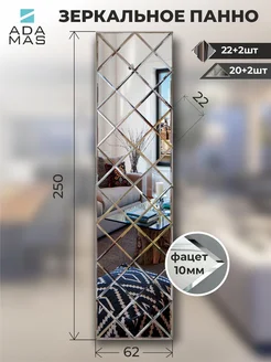 Зеркальное панно на стену 62х250см
