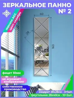 Зеркальное панно на стену 40х160см