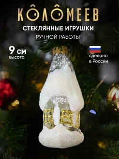 Елочная игрушка стекло новогодняя фигурка Домик 9 см