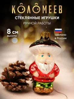 Елочная игрушка стекло новогодняя фигурка Гриб 8 см