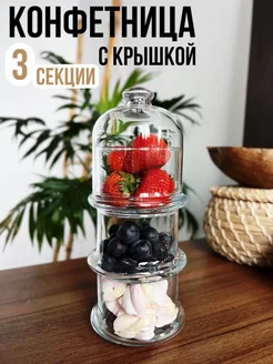 Конфетница стеклянная с крышкой прозрачная, для хранения
