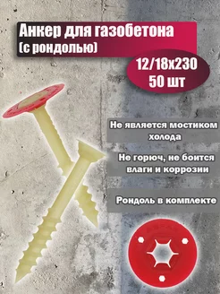 Анкер для газобетона 12 18x230 с рондолью 50 шт