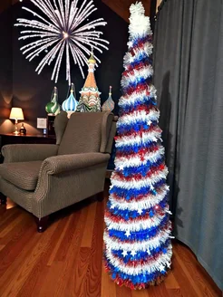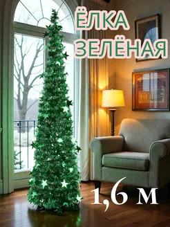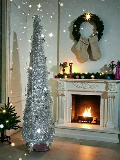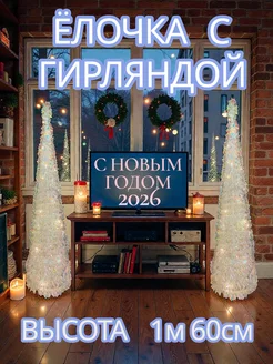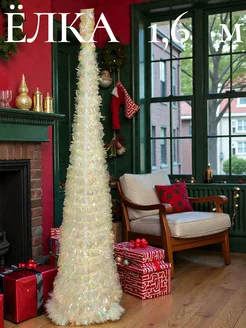 Елка 160 см разборная перламутровая с гирляндой 200 огней
