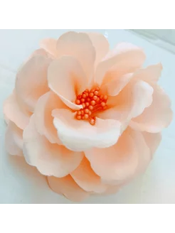 Брошь женская "Пион классический". Цвет коралловый светлый