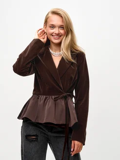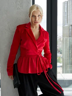 Приталенный пиджак с баской на запах