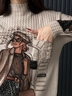 Вязаный свитер с принтом оверсайз