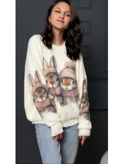 Оверсайз свитер с принтом пушистый