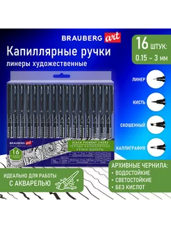 Капиллярные ручки линеры 16 шт. черные, 0,15-3,0 мм