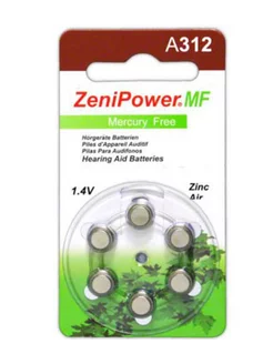 Батарейка ZENIPOWER 312 для слухового аппарата