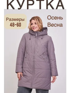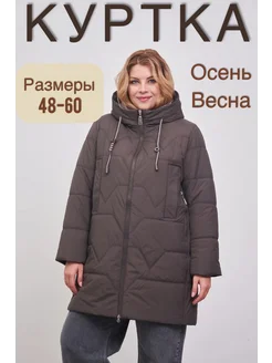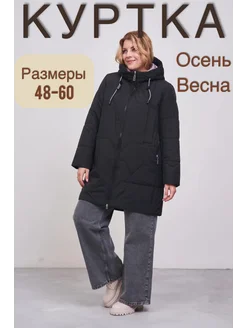 Куртка демисезонная больших размеров с капюшоном удлиненная