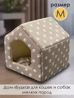 Домик Будка Лежанка для кошек собак бежевый лапки размер М