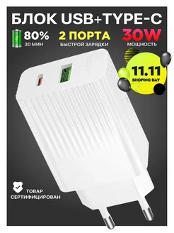 Блок зарядки для iPhone быстрая type-c на Андроид 30W