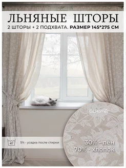 Льняные шторы 2 шт 140х275(260) см