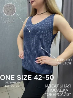 Блестящий топ майка со стразами +size
