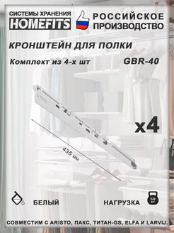 Кронштейн (4 шт) полки для гардеробной системы GBr-40U-белый