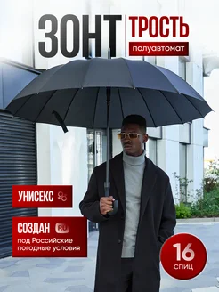 Усиленный зонт автомат антиветер, большой от дождя 16 спиц