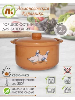 Горшок- сотейник для запекания 2л, керамический "Гуси"