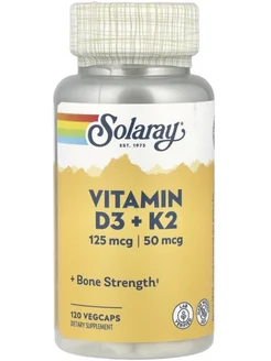 Витамины D3 и K2, 125 мкг, 120 растительных капсул
