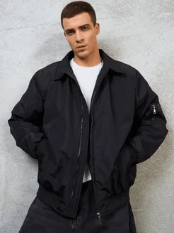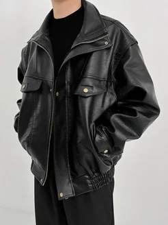Бомбер мужской оверсайз утепленный экокожа с воротником